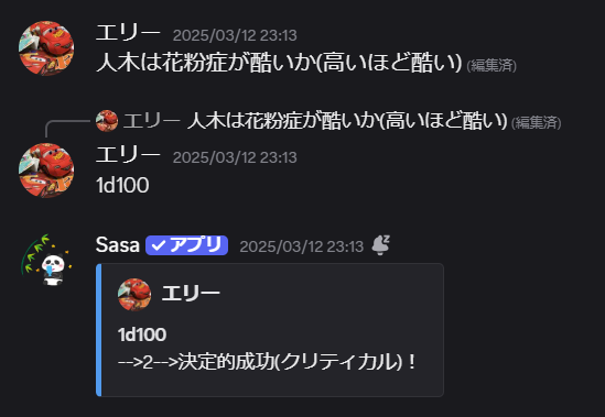 花粉のシーズンだけど、人木はどうなんだろうかとダイスを振ったら微塵も花粉症じゃなくて微塵も面白くないので困っていた事をふと思い出した