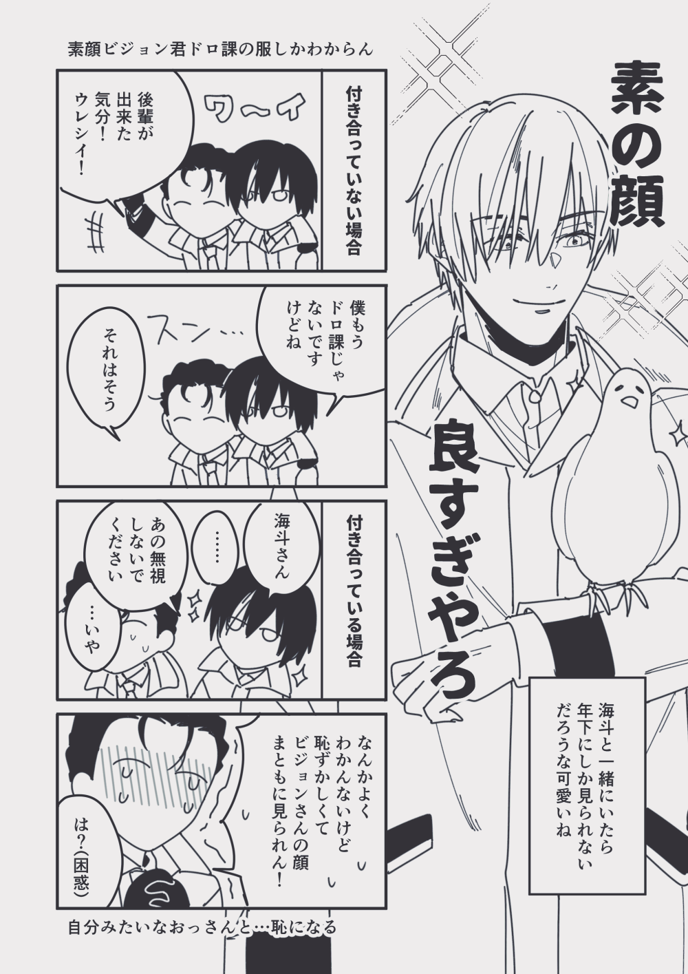 2023/12/5 顔漫画かつ四コマ漫画。いよいよ腐女子の人格が表立って出てきている。