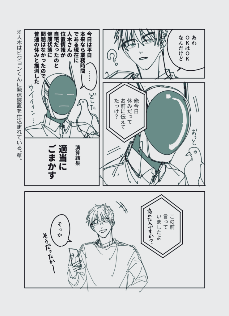 エンディング後まんが イラスト_エリー 2025.08.30 イラスト_エリー ビ+海全年齢 2023/12/10 チップを埋められてるネタは描いておこうと思った。これはビ海ビ?まあ腐女子が描いているからそうか…。ビジョンくんはヘルメットverも描きたい。適当に描いてしまっているけど…。