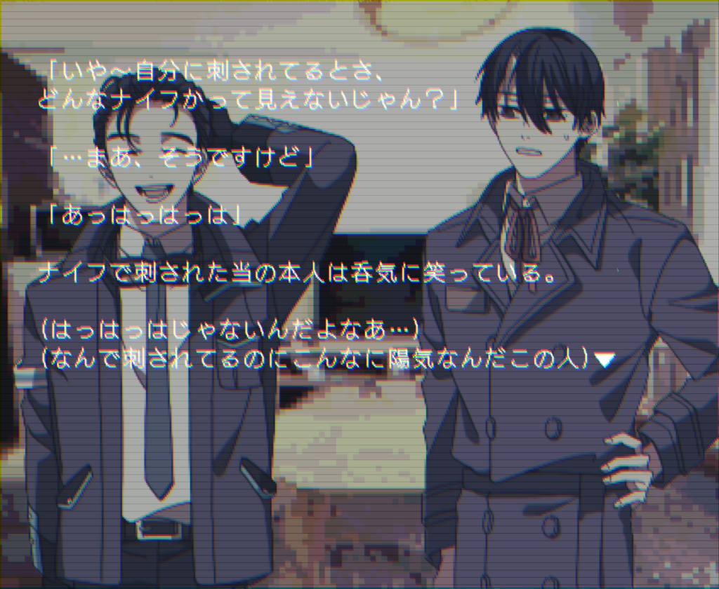 2025/5/14 またノベルゲームみたいな絵を描いた。とても楽しい。前に描いた時、どういう加工をしたのかメモしておいてくれ過去の私。