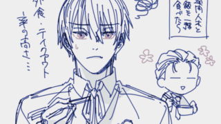 イラスト_エリー 原稿合間の落書き(CP要素あり)